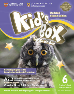 Kid’s Box for Ecuador is a six-level course for young learners. Perfectly aligned to the Ecuadorian National Curriculum, Kid’s Box for Ecuador is bursting with bright ideas to inspire you and your students. Perfect for general use, the course also fully covers the syllabus of the Cambridge Young Learners English (YLE) tests, preparing students for exam success. The Student’s Book and Workbook present and practice new language through entertaining stories and fantastic songs and activities, alongside CLIL pages based on Ecuadorian topics and culture. Students also have access to an online platform with games and supplementary grammar, vocabulary, and reading activities. Online work can be tracked and reviewed by the teacher.